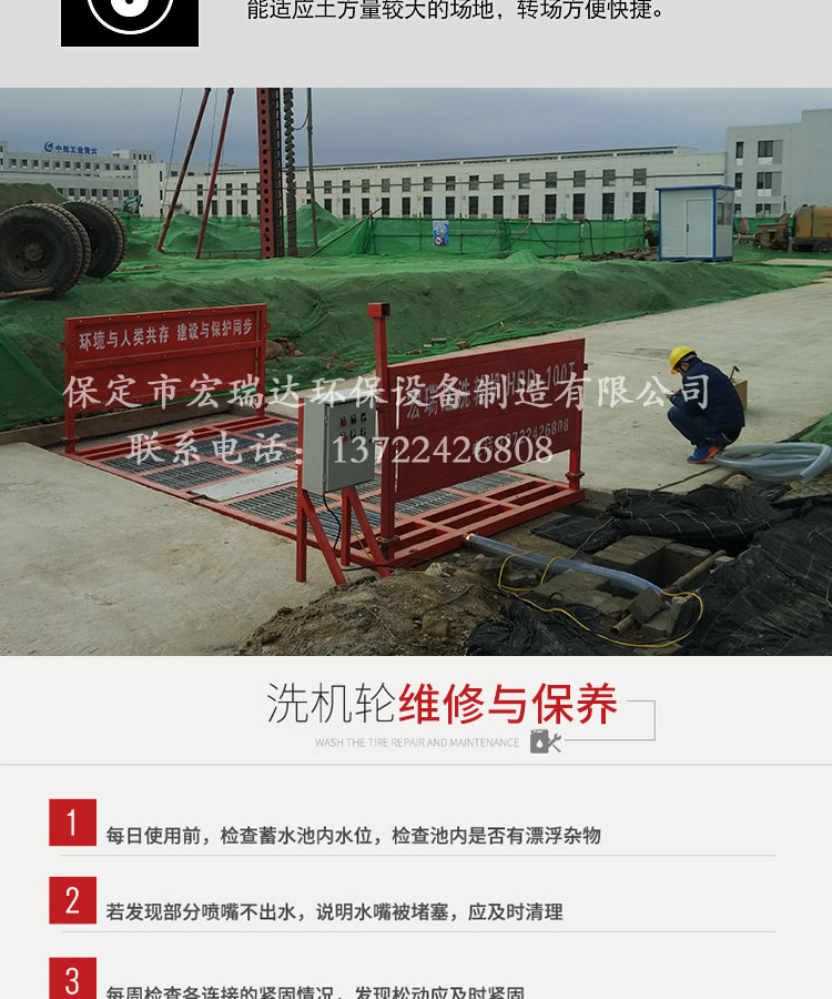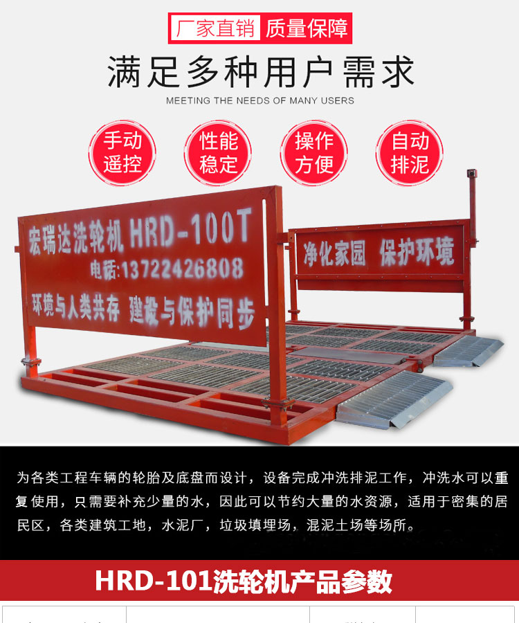- HRD-100G四軸基坑式洗輪機 有自動、遙控和手動三種控制,可自動完成沖洗的工作,清洗時間短,使用周期長,可以隨時轉場,承重力強,特別適用于各類建筑工地、礦業工場、水泥制品廠、煤礦、發電廠、垃圾填埋廠、工業制造、高檔社區等場所的進出車輛清洗,安裝運輸方便,可適用各種工地頻繁轉場的需要。