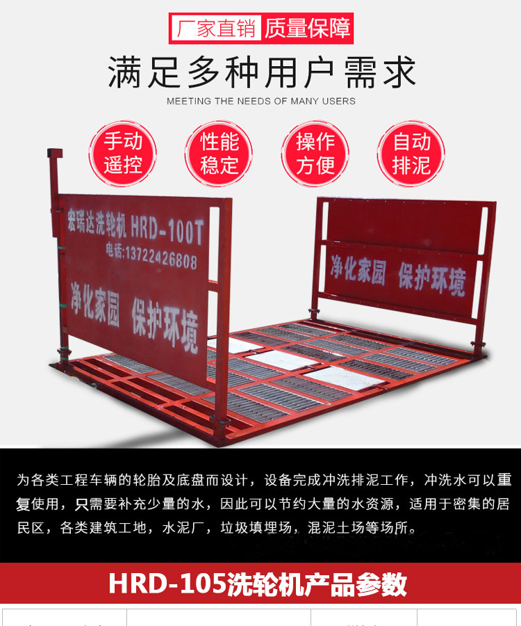 HRD-105工程車洗輪機可自動完成沖洗、排泥的工作,沖洗用水可重復使用,100T以下各類工程車和垃圾運輸車都可以承載,有自動、遙控和手動三種控制,特別適用于各類建筑工地、礦業工場、水泥制品廠、煤礦、發電廠、垃圾填埋廠、高檔社區等場所的進出車輛清洗,從而達到無粉塵污染的優良工程,二期安裝運輸方便,可適用各種工地頻繁轉場的需要。