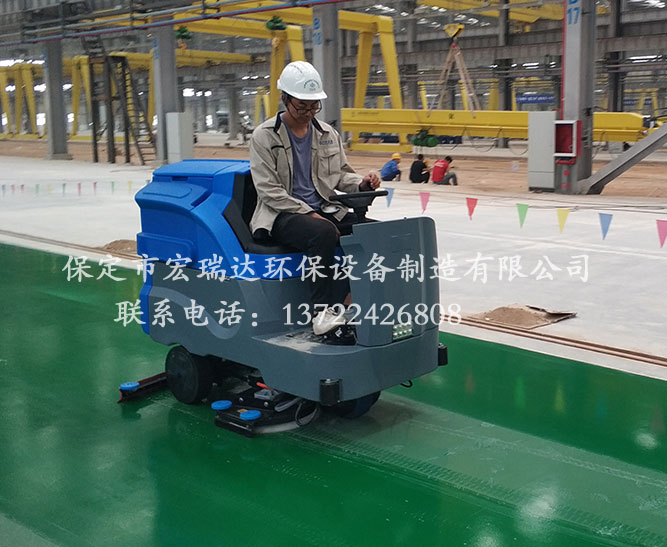 宏瑞達電動洗地機純電動,噪音低,沒有廢氣排放,是一種綠色無污染清潔設備。