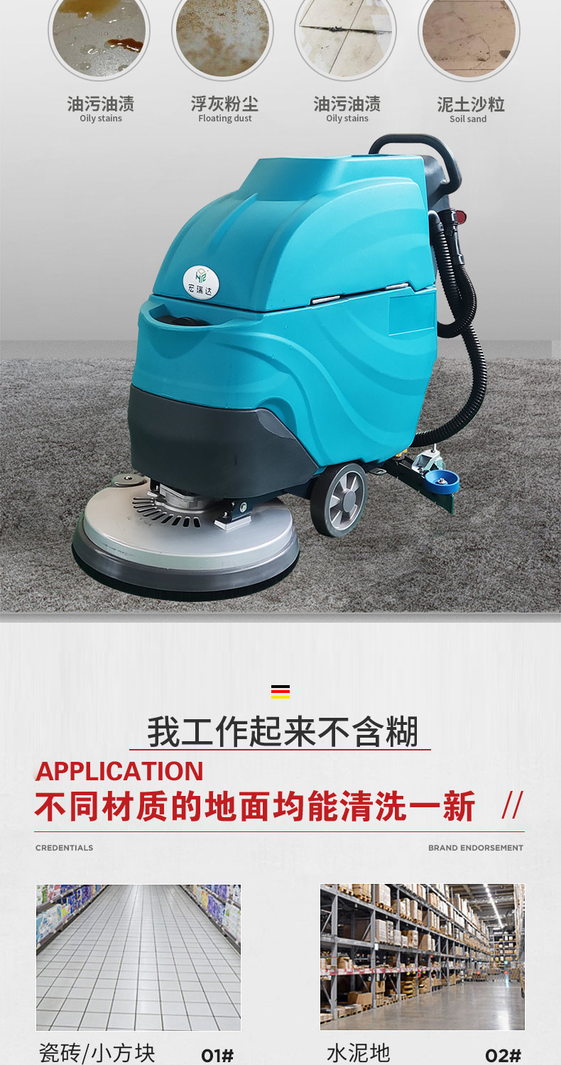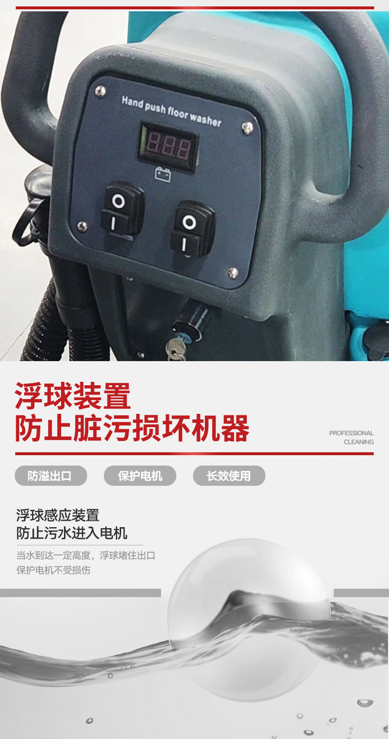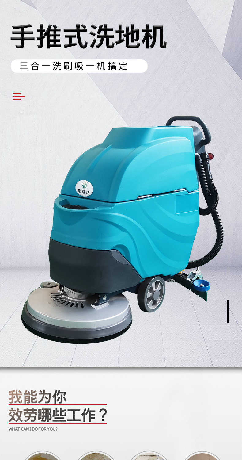 - 手推式洗地機洗地、吸干同步完成,同時將污水及其他污染源帶離現場,它的效率是人工清潔的15倍以上,人性化的設計,符合使用習慣,一鍵式操控,全自動清洗,操作人員僅需手推把握方向即可,無需具備專業知識即可輕松掌握,讓我們邁向智能化清潔之路變得簡單、可行,采用低噪音設計,將機器工作的負面影響降到最低,讓您白天、晚上都可安心工作,在收獲潔凈環境的同時,樹立起良好的工作形象,電池供電,讓它能夠自由無障礙行走,推到哪洗到哪,輕松自由